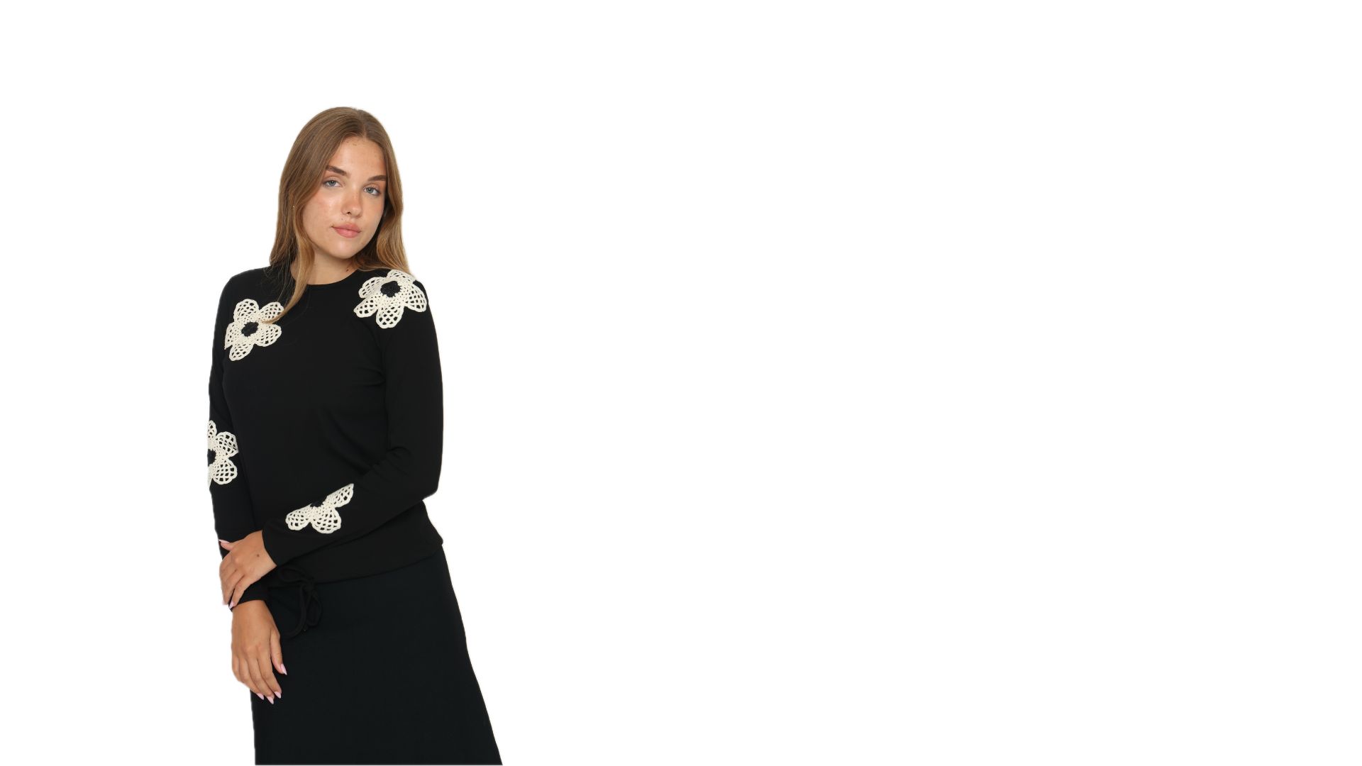 חולצה רקמות פרחים שמנת זהב